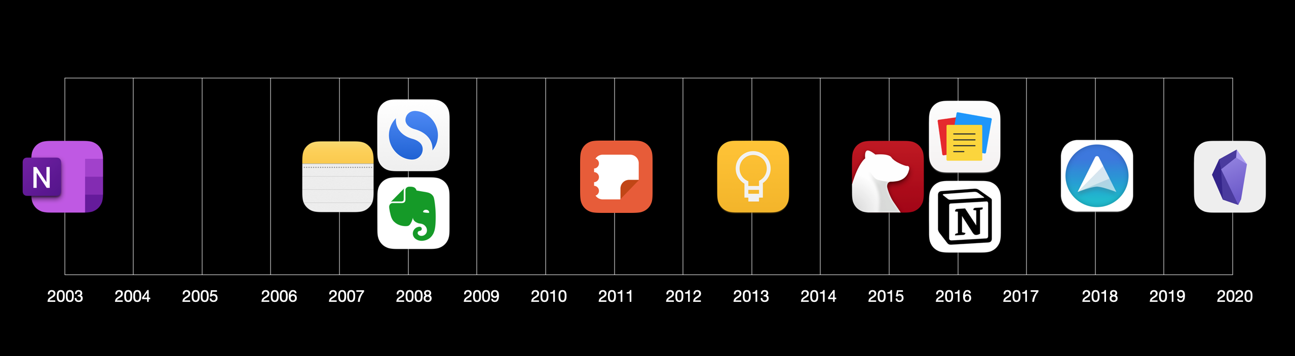 AppNew Users per YearKeep 80 949 999SamsungNotes 62 500 000OneNote 27 256 483Evernote 5 760 417AppleNotes 3 303 027Notion 1 344 934ZohoNotebook 525 023Bear 461 532SimpleNote 92 344Obsidian 72 973UpNote 26 537