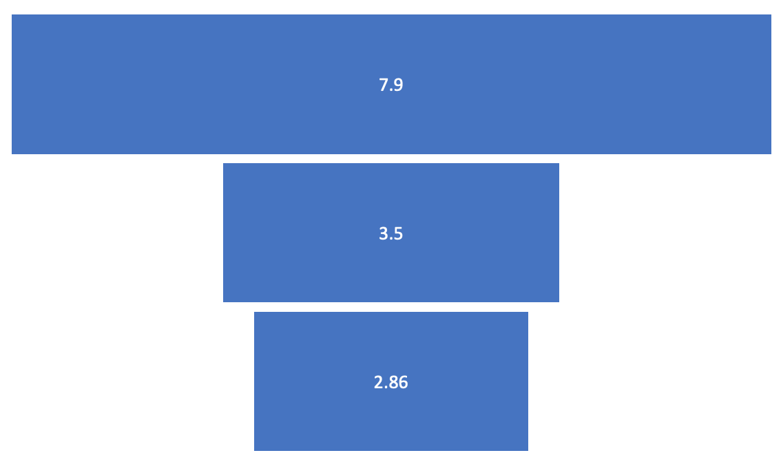 For this case, we will begin with the total number of people connected to the Internet. There are between 5.22 and 7.9 billion smartphone users in the world, all of which are potential customers. We will stick to 7.9 billion. However, we are looking at multi-platform apps, for which we have to narrow the number down to the number of people with computers, a smaller percentage. For this, we will assume that all people with PCs also own smartphones.